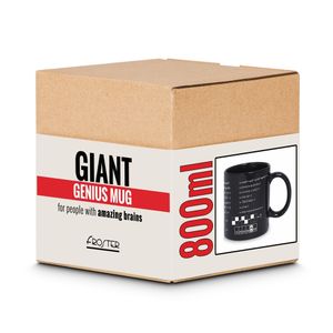 Kubek o gigantycznej pojemności z zadaniami do rozwiązania.