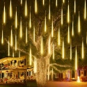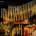 Lampki typu meteor LED (ciepły biały kolor) wyglądają jak spadające sople światła, tworząc wyjątkową iluminację widoczną z daleka.