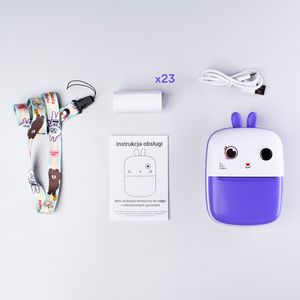 Mini drukarka termiczna dla dzieci z aparatem fotograficznym i kamerą - fioletowa