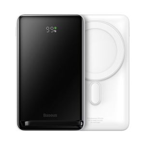 Kod produktu: 1018529 Powerbank Baseus Magnetic Bracket to powerbank o pojemności 10000mAh z możliwością ładowania bezprzewodowego MagSafe, dzięki czemu możemy osiągnąć szybkie ładowanie bezprzewodowe na poziomie nawet 20W. Powerbank został wyposażony w składaną podpórkę, która umożliwi ładowanie smartfona w pozycji stojącej. Nie zabrakło również standardowych już czujników, takich jak: przeciwprzepięciowe oraz przeciwprzeciążeniowe. * Funkcja magnetyczna MagSafe działa tylko i wyłącznie bezpośrednio do telefonu lub do etui z wbudowanym oczkiem magnetycznym o zastosowaniu MagSafe. Specyfikacja: - 100% Oryginalny - Zapakowany w oryginalne opakowanie - Możliwość montażu dzięki technologii MagSafe - Materiały: PC+ABS - Pojemność: 10000mAh - Moc wyjściowa ładowania bezprzewodowego: 5W, 7.5W, 10W, 15W - Napięcie wejściowe Type-C: 5V/3A, 9V/2A - Napięcie wyjściowe Type-C: 5V/3A, 9V/2.22A, 12V/1.5A (20W) - Waga: 220g - Wymiary: 117,3 x 69,7 x 20,3mm Zestaw zawiera: - 1 x Powerbank Baseus Magnetic Bracket - 1 x kabel USB Typ C Baseus Xiaobai 60W 0,5m - 1 x instrukcja obsługi - 1 x karta gwarancyjna
