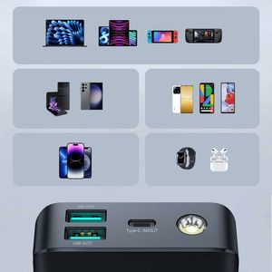 Powerbank z latarką 30W 20000mAh + kabel USB-A - USB-C 25cm czarny