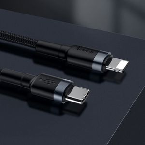 Kod produktu: 1018296 Przewód USB-C / Lightning pozwala szybko i bezpiecznie naładować smartfon lub przesłać dane. Prędkość transmisji wynosi 480 Mbp/s . Praktyczny rzep zapobiega plątaniu się przewodu. Najważniejsze cechy - Wytrzymały kabel USB Typ C PD / Lightning w nylonowym oplocie - Superszybkie ładowanie - Wsparcie dla technologi Power Delivery oraz Quick Charge 3.0 to gwarancja błyskawicznego odnawiania energii mobilnych sprzętów. - Wzmocnione łączenie - Najbardziej newralgiczny punkt każdego kabla - łączenie przewodu z wtyczką, zostało dodatkowo wzmocnione by zapobiec pękaniu. - Błyskawiczny transfer danych - Z prędkością transmisji na poziomie 480 Mbp/s , plik o rozmiarze 1 gigabajta można przesłać w raptem 30 sekund. - Nylonowy oplot - Przewód został umieszczony w mocnym, nylonowym oplocie. Nie tylko wyjątkowo trwałym, ale również przyjemnym w dotyku. - Aluminiowe wtyczki - Eleganckie i wytrzymałe. Odporne na ścieranie i utlenianie. - Praktyczny rzep - Ułatwia przechowywanie i zapobiega plątaniu się przewodu. Specyfikacja: - Marka: Baseus - Nazwa: Cafule Cable - Długość: 1 metr - Typ złącza przewodu: USB Typ C (męski), Lightning - Standard USB: USB 2.0 High Speed (480 Mbit/s), Power Delivery (18W) - Standard Quick Charge: QC 3.0 - Funkcje: ładowanie / transfer danych - Materiał: aluminium + nylon - Kompatybilność: urządzenia z portami USB Typ C, Lightning Zestaw zawiera: - Przewód USB-C PD / Lightning