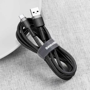 Kod produktu: 1018291 Przewód USB / USB-C pozwala szybko i bezpiecznie naładować smartfon lub przesłać dane w tym samym czasie. Natężenie prądu wynosi 2 A . Praktyczny rzep zapobiega plątaniu się przewodu. Najważniejsze cechy: - Wytrzymały kabel USB / USB-C w nylonowym oplocie - Błyskawiczne i bezpieczne ładowanie - Natężenie rzędu 2 A i przewód z czystej miedzi to gwarancja szybkiego i bezpiecznego odnawiania energii. - Wzmocnione łączenie - Najbardziej newralgiczny punkt każdego kabla - łączenie przewodu z wtyczką, zostało dodatkowo wzmocnione by zapobiec pękaniu. - Ładowanie i transfer danych jednocześnie - Akcesorium może przesyłać dane oraz ładować smartfona w tym samym czasie . Bez irytujących wyskakujących okienek. - Aluminiowe wtyczki - Eleganckie i wytrzymałe. Odporne na ścieranie i utlenianie . - Nylonowy oplot - Przewód został umieszczony w mocnym, nylonowym oplocie. Nie tylko wyjątkowo trwałym, ale również przyjemnym w dotyku. - Praktyczny rzep - Ułatwia przechowywanie i zapobiega plątaniu się przewodu. Specyfikacja: - Marka: Baseus - Nazwa: Cafule Cable - Wtyczki: USB / USB-C - Materiał: aluminium + nylon + TPE - Natężenie: 2A (max) - Długość: 3 metry - Funkcje: ładowanie / transfer danych - Kompatybilność: urządzenia z portem USB-C Zestaw zawiera: - Przewód USB / USB-C