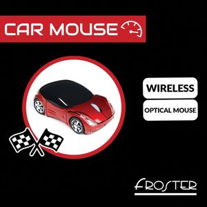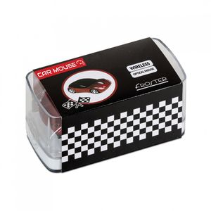 Bezprzewodowa mysz komputerowa w kształcie samochodu wyścigowego.